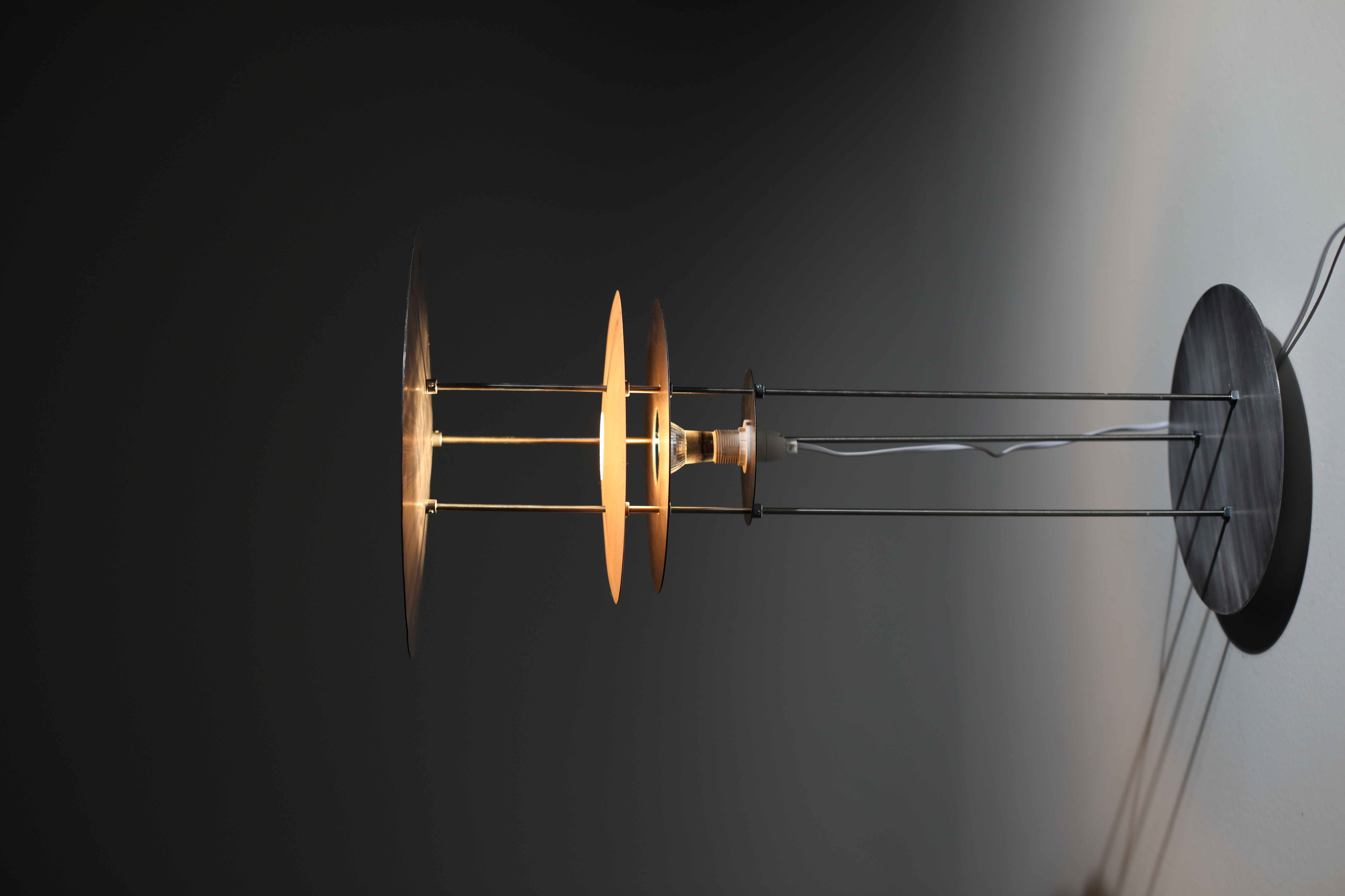 Light passing through the middle hole further enhances this illusion. The lamp's height is adjustable using steel threads and nuts for easy assembly and disassembly.